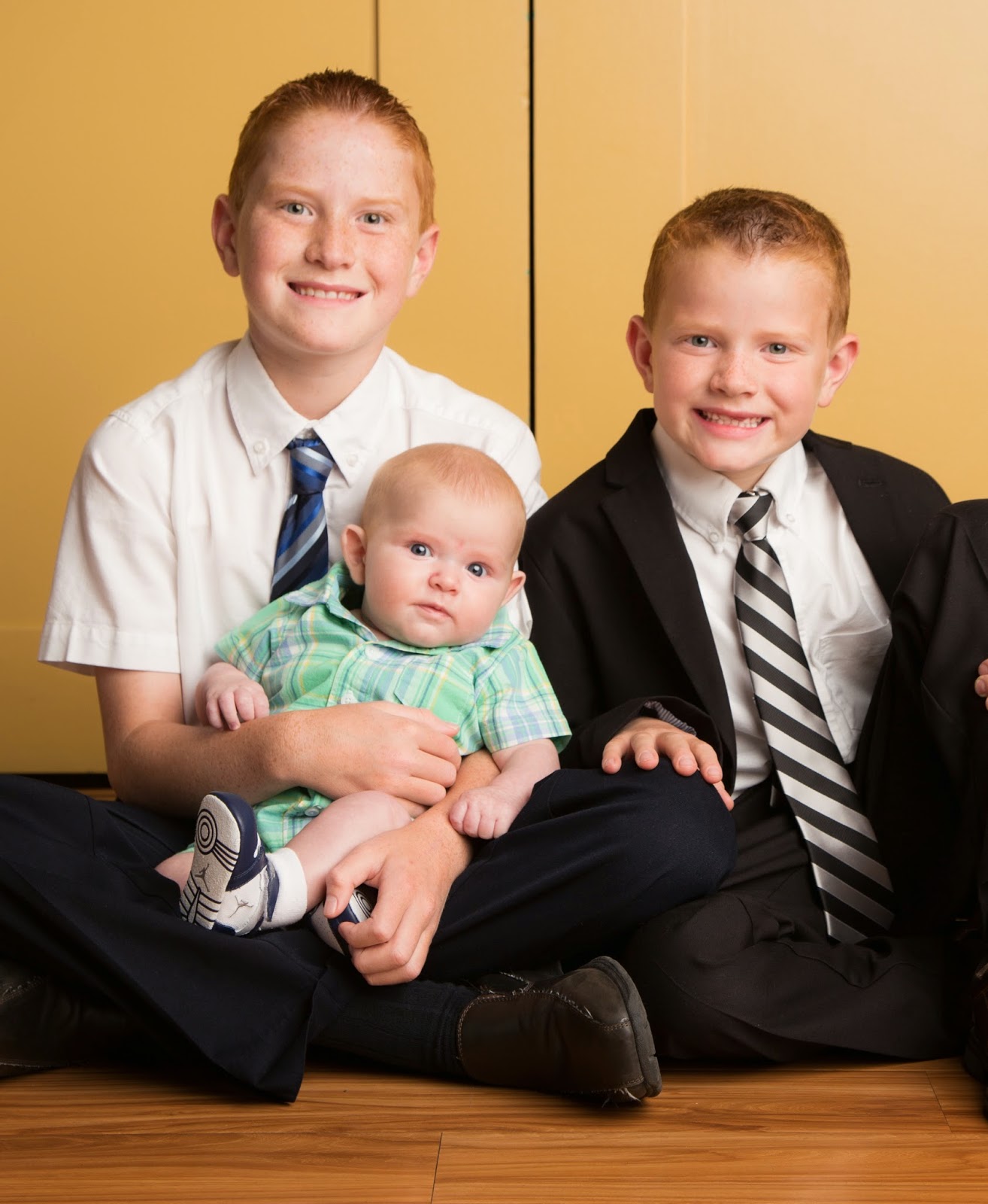 I love this picture of my "boys!!!" Chase and Bridger love to dog pile on Matt. Angie captured this moment. I think Tanner's expression is priceless.