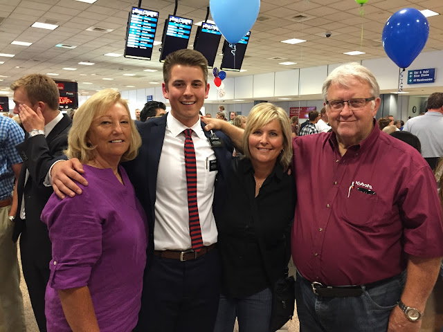 After two years of serving a faithful mission, Elder Eli Blair came home from Oregon. Kip invited us to come to the airport and I'm so glad we did. It was awesome to see Eli coming down the escalator and to see him embrace his families. Eli's been such a great example to my boys. They've written Eli some letters over the last two years. I'm so proud of Eli!!!